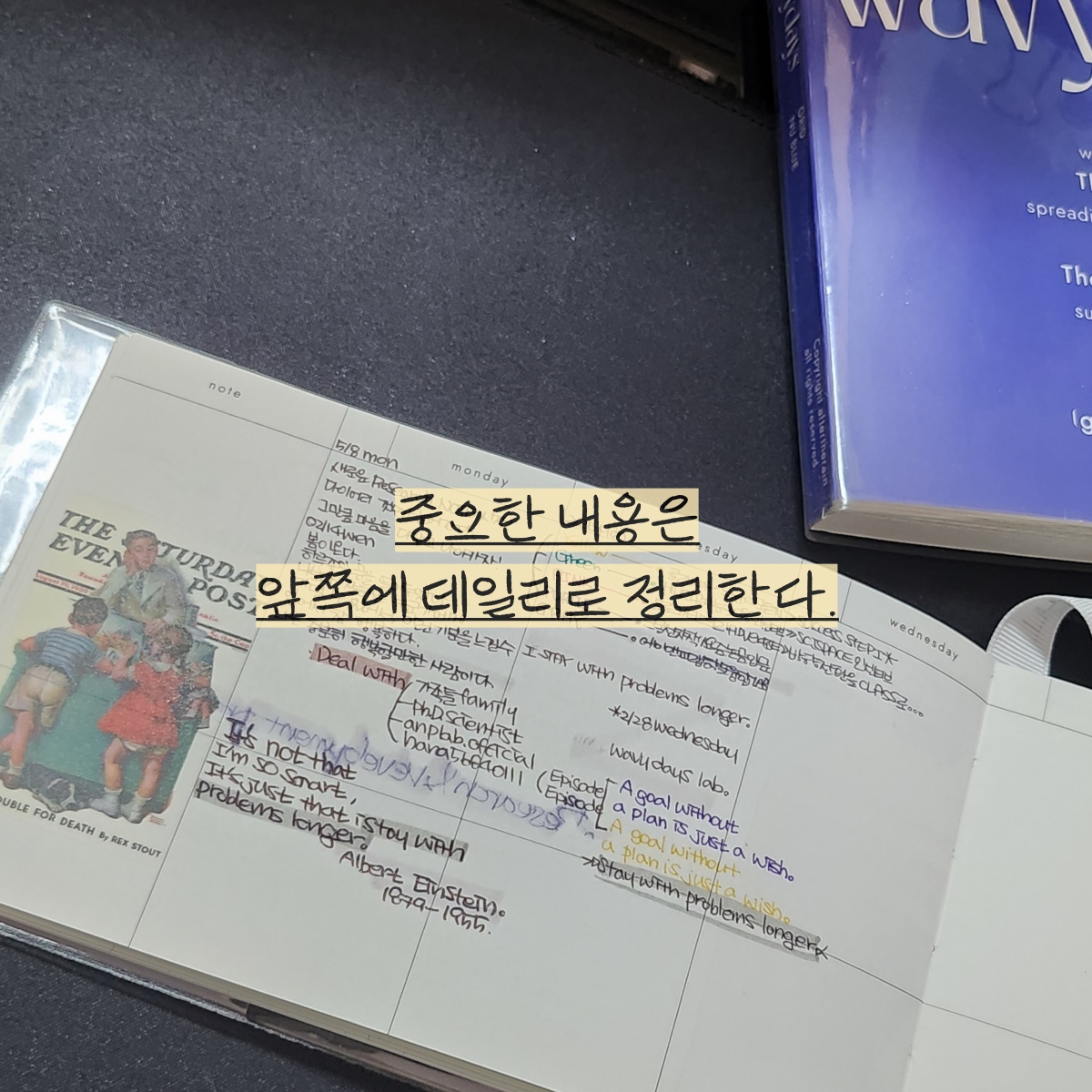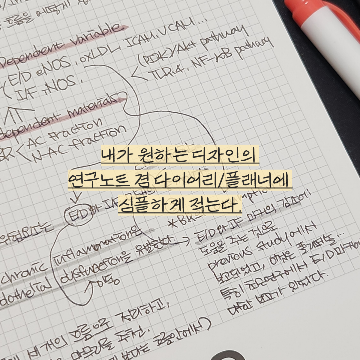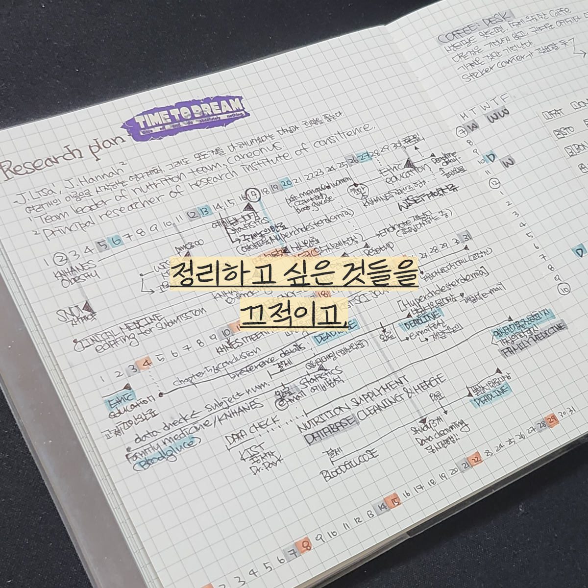그런 의무에서 벗어난 지금은 내가 원하는 디자인의 연구노트 겸 다이어리/플래너를 사용할 수 있다.