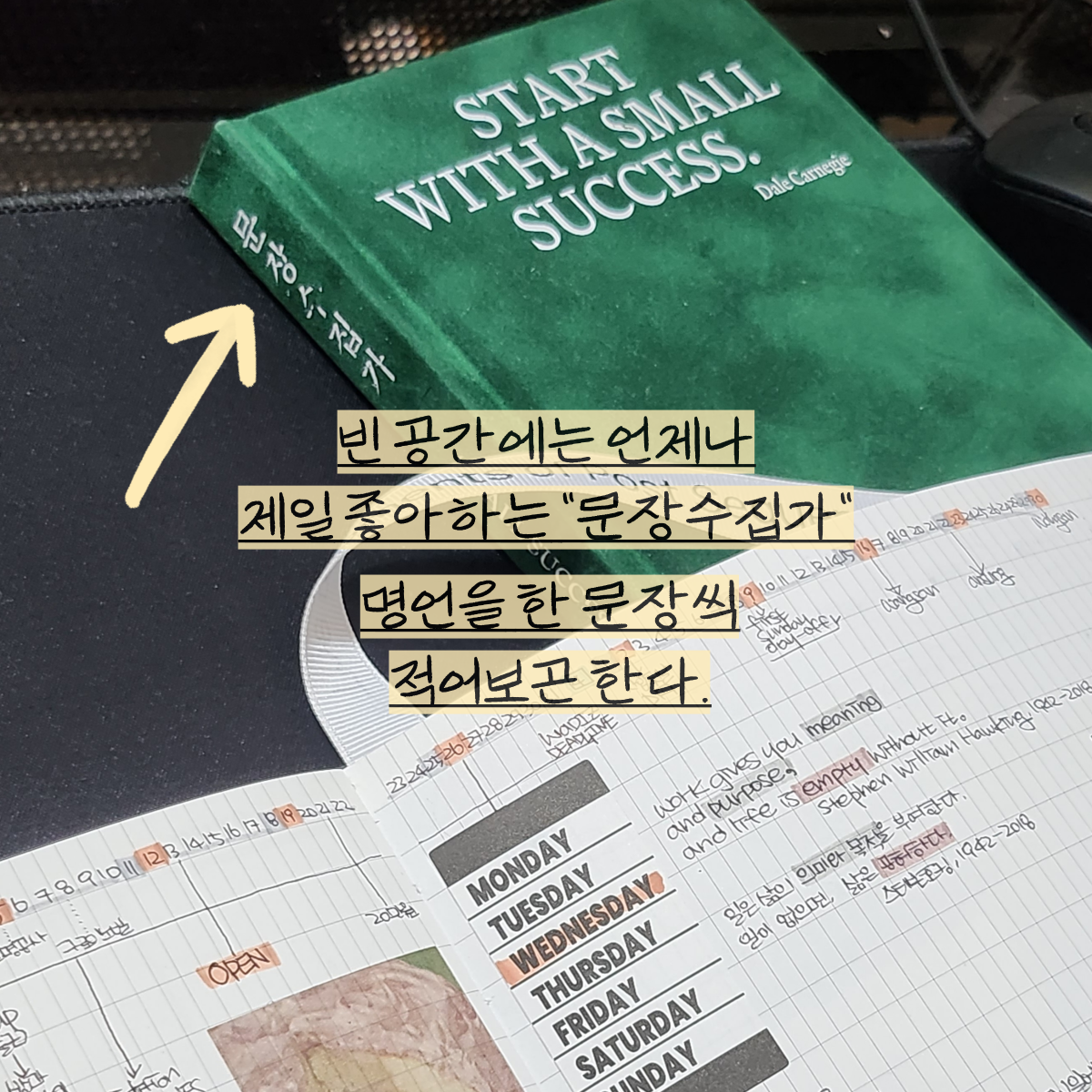 초록색 명언집 (#문장수집가): 다이어리 빈 자리에 내가 좋아하는 문구를 적을 때 참고하는 명언집이다.
