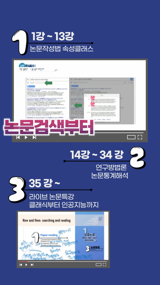 클래스유 '논문의 모든 것' 수업을 한 달 들으면 5만원 정도인데, 한 달만 들어보면 논문에 대한 기본 팁과 통계 방법별로 논문결과를 해석하는 방법을 알 수 있도록 연구소 박사들이 만든 커리큘럼이라서 신입생이나 연구소 석사 연구원들에게 추천하곤 한다.