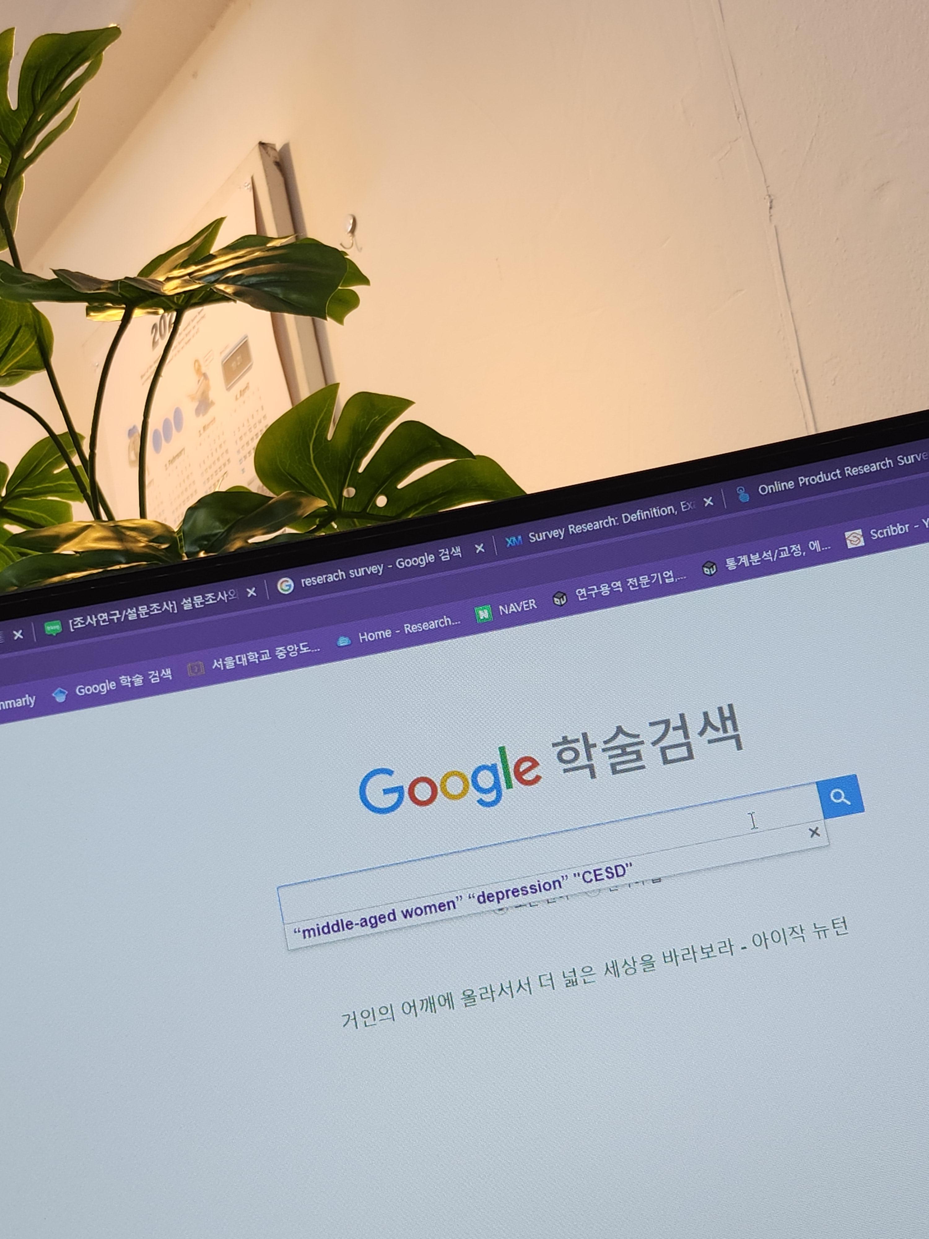 사실, 검색 첫 페이지에 대표적으로 우울을 확인할 수 있는 도구인 “CESD”를 발견할 수 있을 것이고, 국제적으로 많이 이용된 도구라면, 한글로 번안된 도구인 “K-CESD”도 쉽게 찾을 수 있다. 이렇게 국제적으로 공인된 설문조사지를 사용하면 신뢰도 타당도 가 이미 검증되어 있는 경우가 많다.