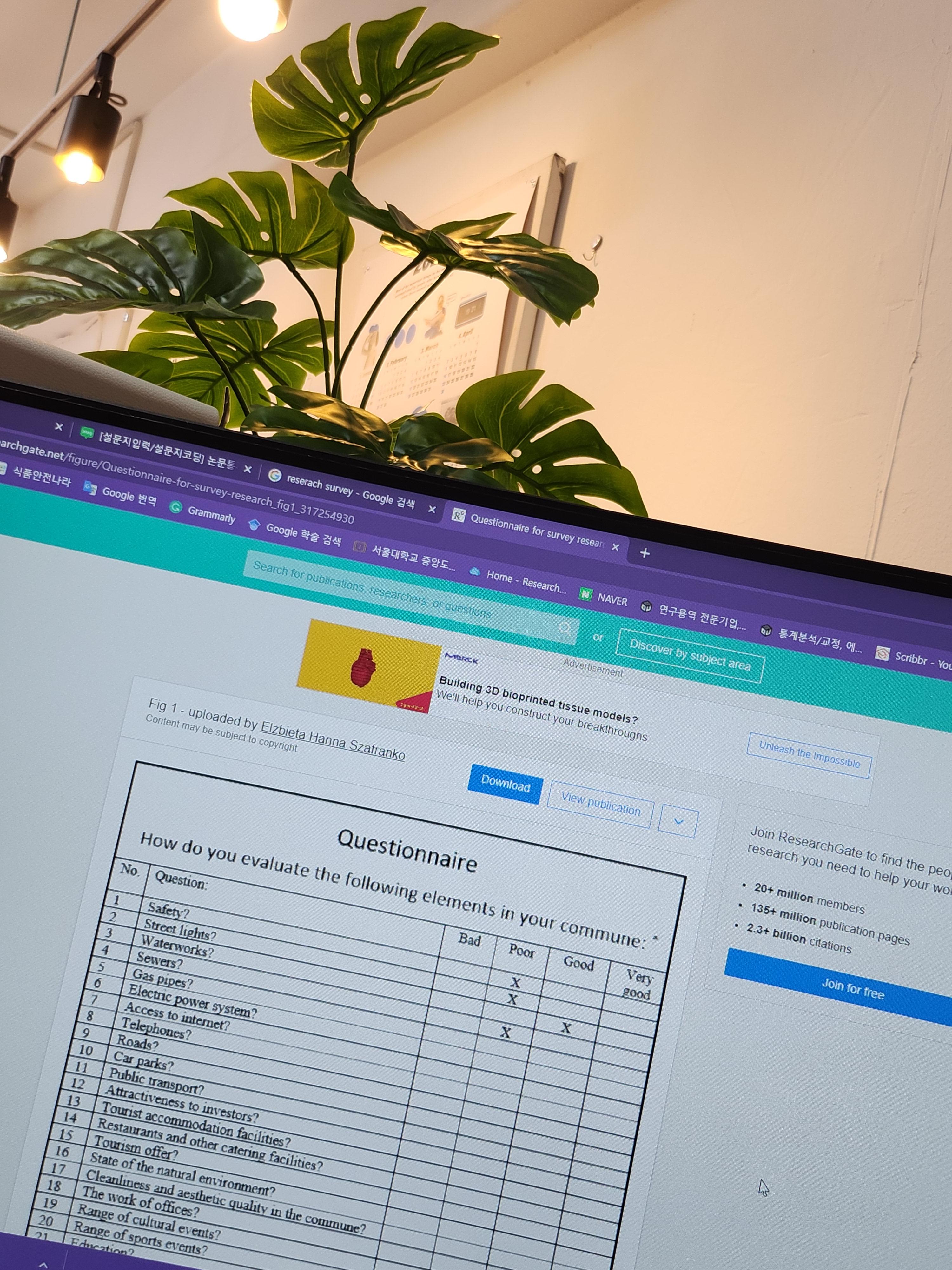 이 때에 얼마나 제대로 된 설문지를 만들었는가가 좋은 데이터를 얻는 데에 기본이 된다. 그리고 이 것이 연구를 잘 수행했고, 그 결과를 논문으로 잘 작성할 수 있는지를 결정한다.