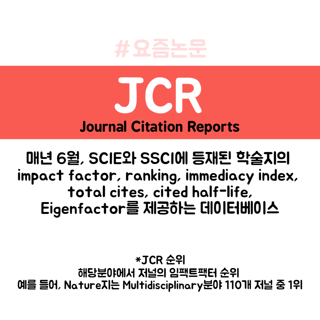 이렇듯 저널들도 계속 평가를 받아 Status가 변경되므로 우리는 최신 연구 동향을 계속 살펴야 한다.