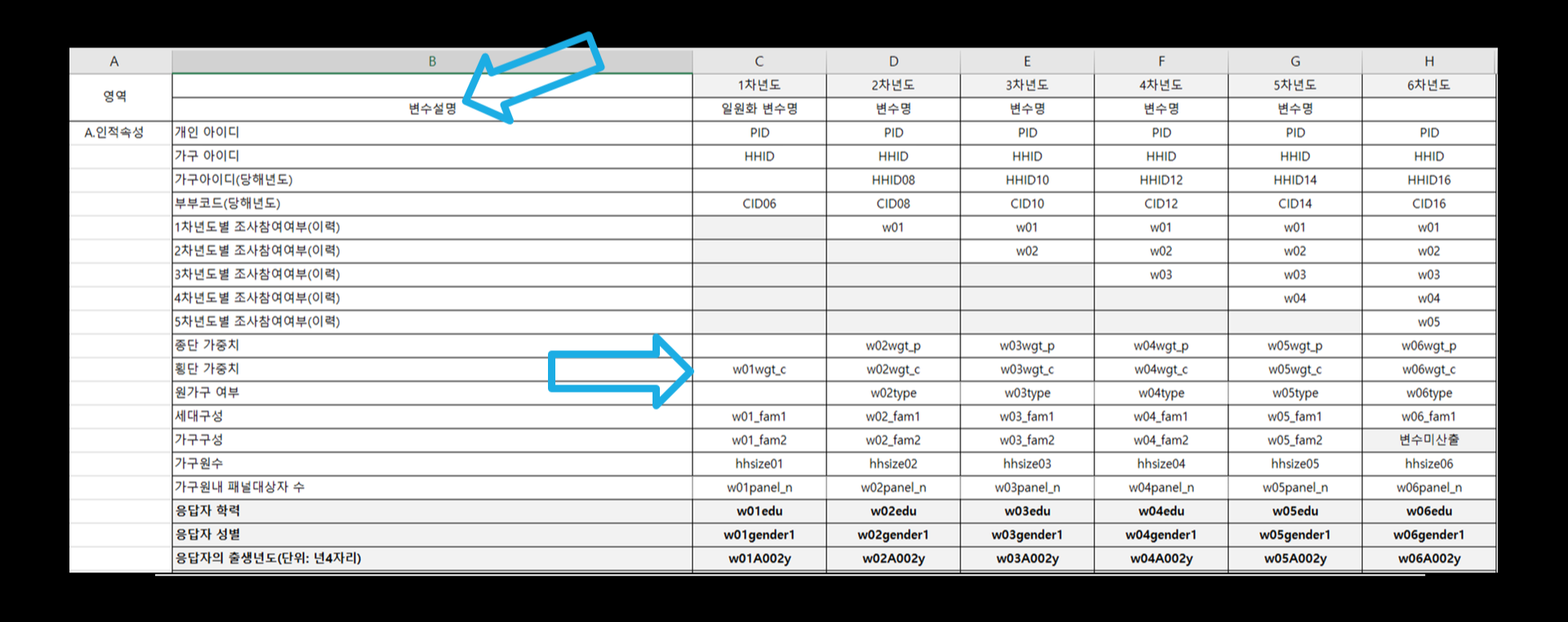 위의 그림은 고령화연구패널의 코드북이며,