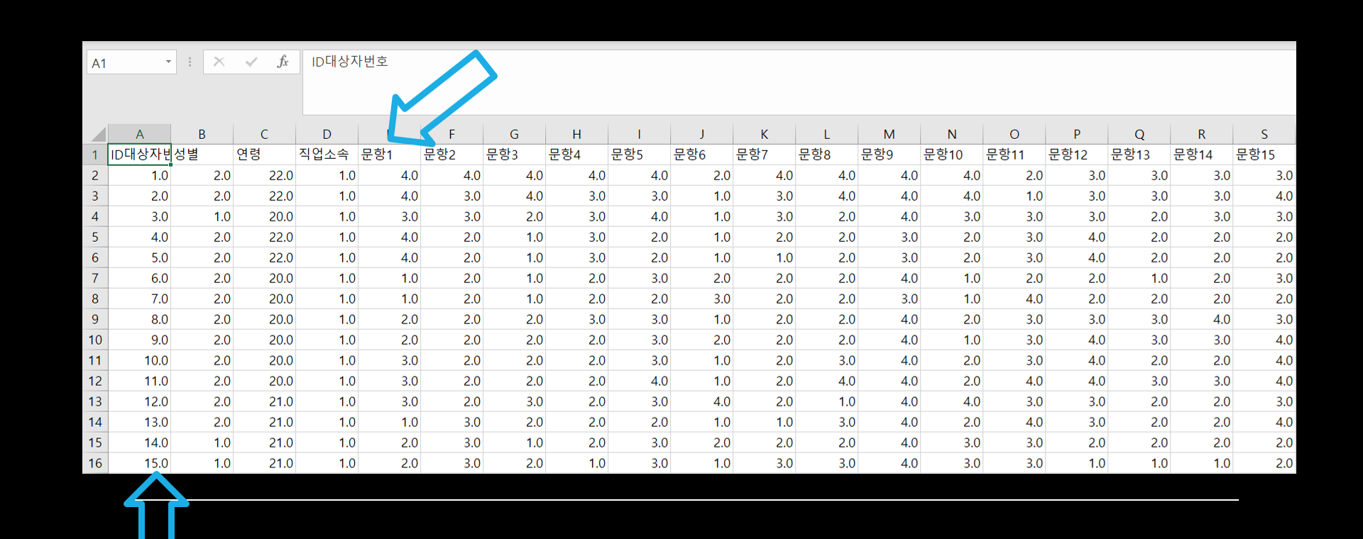 맨 처음에 언급했던데로 데이터의 첫열에 응답자를 구분하기 위한 ID가 있어야 한다. 일련번호가 있어야만 자료를 정렬하여 쉽게 확인할 수 있으며, 오류를 파악하기도 쉽다.