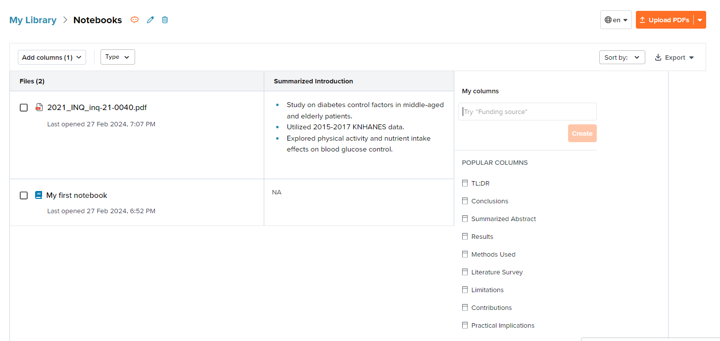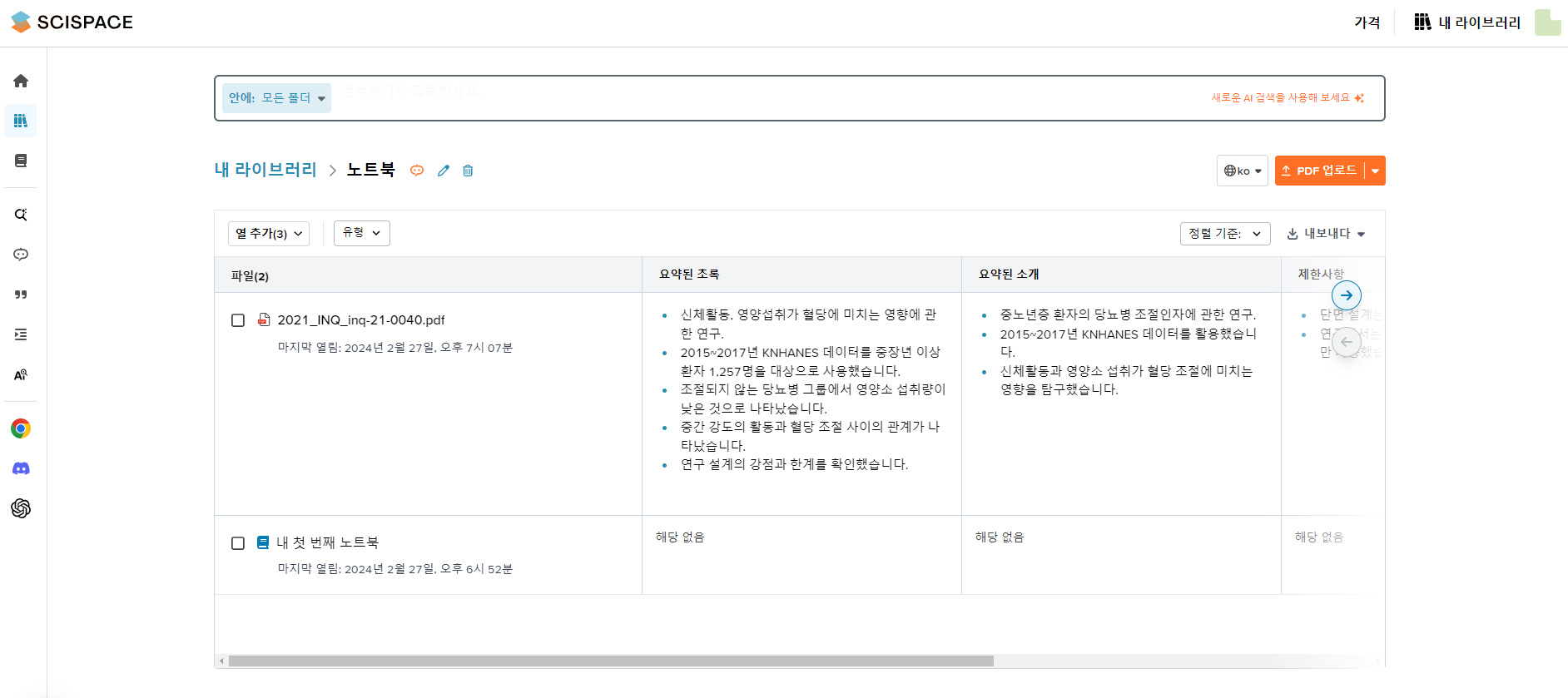 이제 내가 가지고 있는 논문을 요약하고 정리하는 기능을 사용해보면,