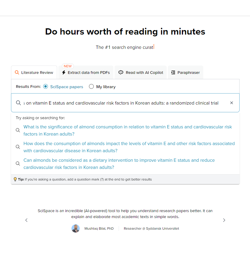 그런 의미에서 오늘 소개한 SCIspace의 메인 홈페이지에서는 다른 연구자들의 질문과 답변을 확인할 수 있기때문에 이런 궁금증들을 조금은 해소할 수 있을 것 같다.