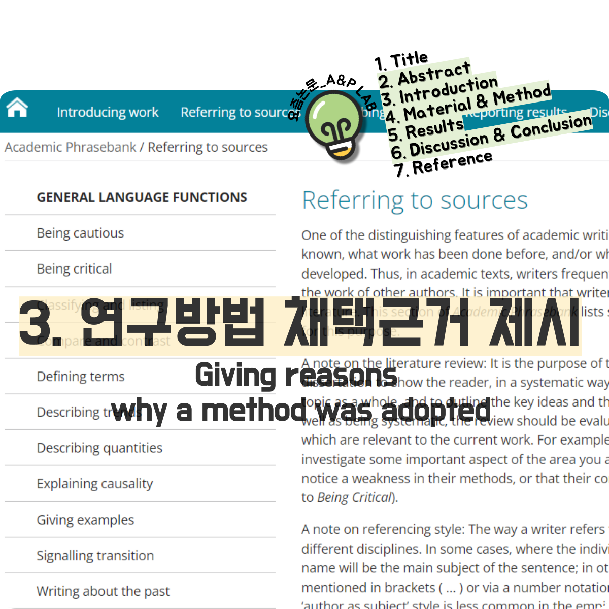 꼭 알아야 할 "연구 방법의 채택 근거"_논문예시 문장에 대해 "아카데믹 프레이즈뱅크"를 참고하여 알아보고자 한다.