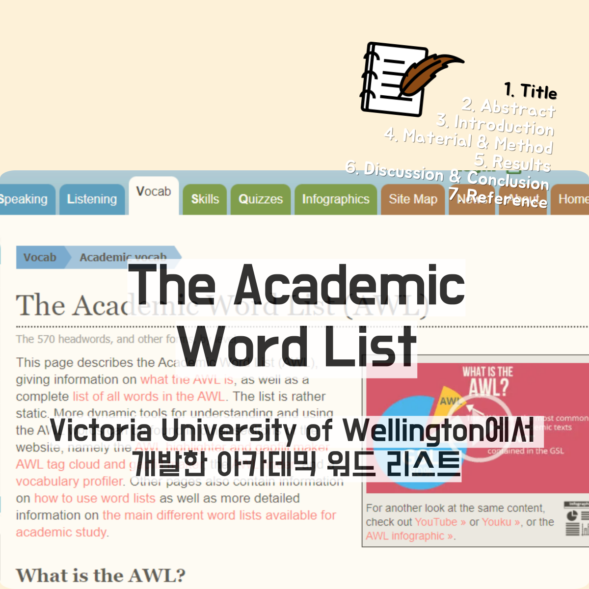 전체 단어목록을 이용할 수 있는 "아카데믹 워드리스트" 사이트 사용법과 예시는 아래에 포스팅 되어 있다.