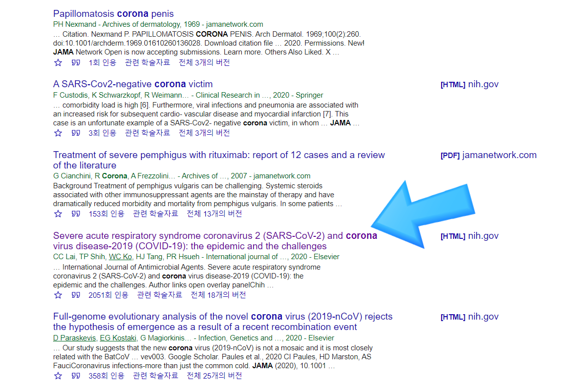 또한, 필자는 대부분의 참고문헌 정리를 구글학술검색을 이용해서 하므로, doi를 구글학술검색으로 확인하는 방법도 소개한다.